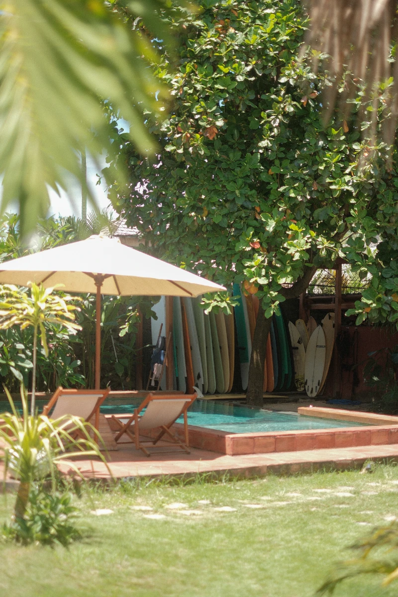Located in the heart of Kuta Lombok, the Village has a cozy, surf-camp feel with six rooms and a laid-back atmosphere. It’s ideal for beginner and intermediate surfers looking for a social, friendly environment where everything revolves around surf, yoga, and connection.