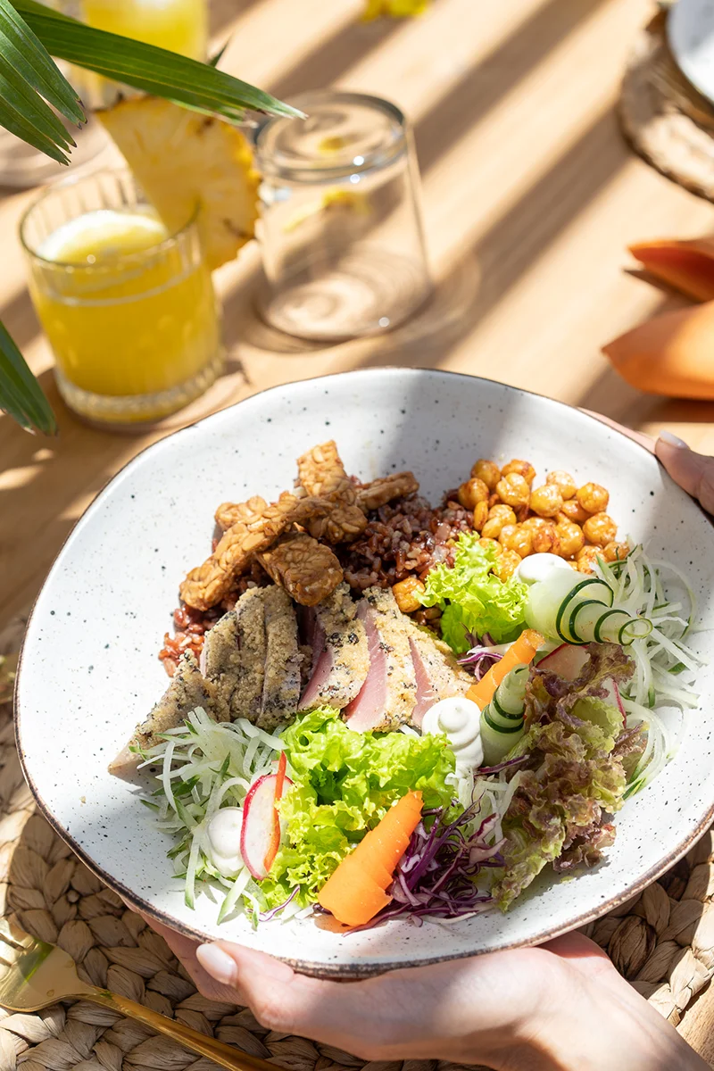 Breakfast is a shared moment—most guests eat together—and we keep it fresh with an exciting daily special alongside a variety of healthy staples to suit every taste. Lunches are included too, but with a flexible à la carte approach: you choose when you eat and what you feel like, all covered by your stay. No hidden charges, just good food—always.